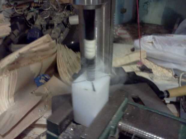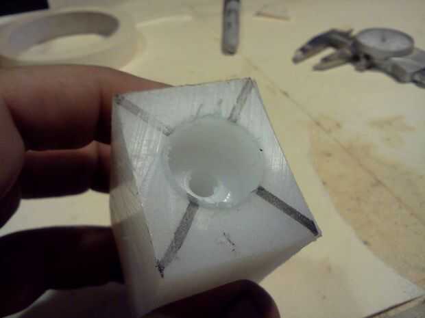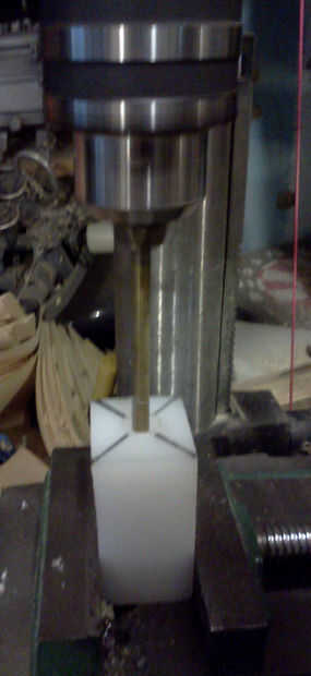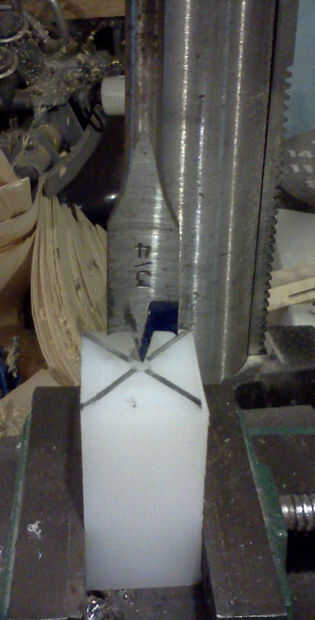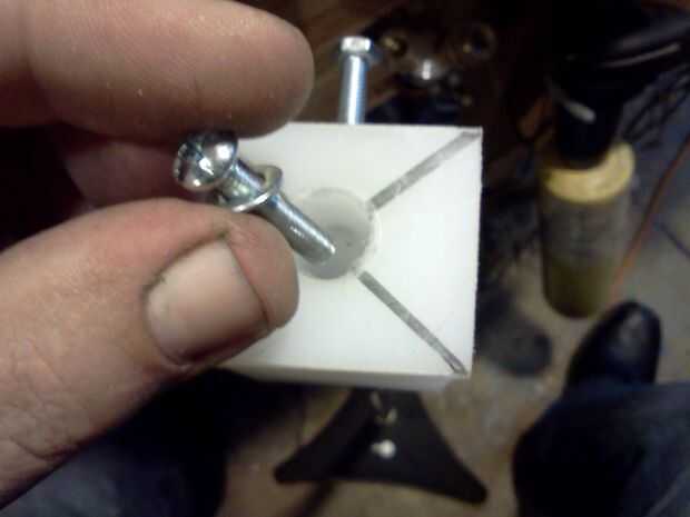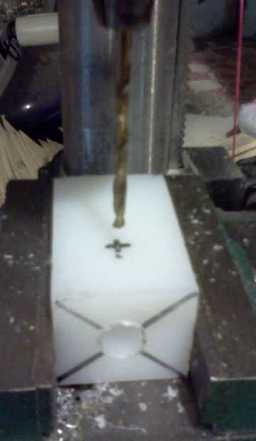 2. Corte el bloque cuadrado de 1 pulgada o más (estoy usando plástico bloquear en este instructable sin embargo se puede utilizar un bloque de madera duro; Sólo utilice más tuercas para los tornillos en vez de golpear ligeramente)