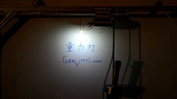 步骤五:现在挂上链条, 就可以将重力灯挂在高处使用啦! 可供一人阅读用哦!