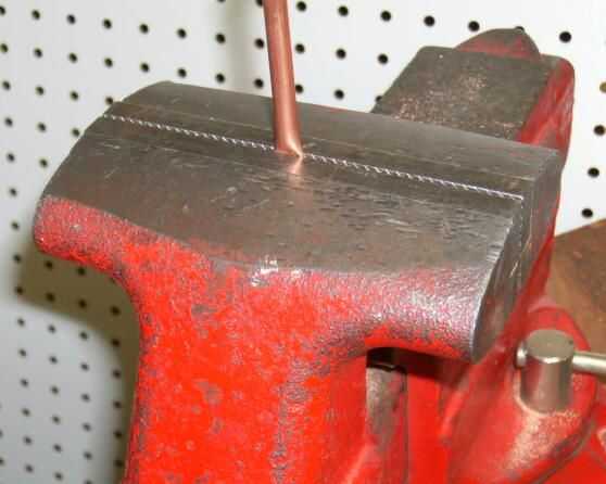 2. fondo aplane las pastillas en un tornillo de banco. Aplanar, vista desde arriba y enderezar el enlace, frente hacia atrás, así que el plano de la almohadilla en la prensa se alinea con el eje largo del enlace. Pulse sólo por parte de lo link más cercano a las mordazas.