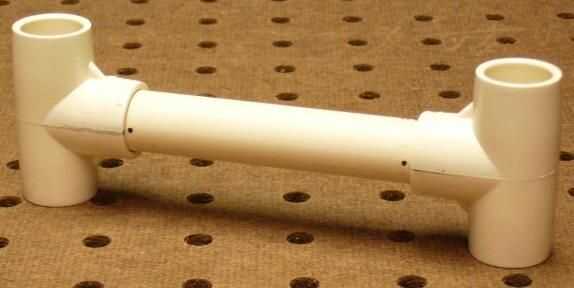 Utilicé algunos tubos CPVC de media pulgada en mi antena, y debe ser marcado a lo largo de los lados opuestos así que puede ser perforado y asegurado en la antena con la alineación apropiada de la rotación. Las marcas del molde en dos tes CPVC se pueden utilizar para marcar con precisión líneas a lo largo de la tubería en los lados opuestos. Se han mejorado las marcas del molde en los tees con scribe o marcador. Los tees están situados en los extremos de la tubería y sus bases empujados sobre una superficie plana para alinear en la misma posición rotatoria. Las marcas de molde se transfieren en el tubo en lados opuestos, luego los puntos están conectados mediante una regla.