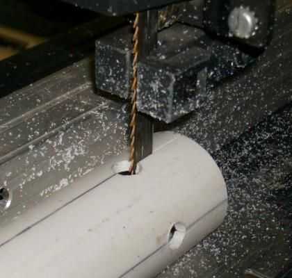 Mi antena se conecta a un mástil de 1-1/4 de pulgada de diámetro, que es un ajuste deslizante apretado dentro de un PVC de 1 pulgada "montaje Cruz". Utiliza tubo corta tubos y accesorios de 1 pulgada para el resto, pero quería usar tubo de PVC de 1 1/4 pulgada de columna vertical de la antena. He encontrado una manera de unirse a la columna vertebral directamente a un tee de 1 pulgada sin necesidad de adaptadores adicionales dos. El interior diámetro de tubería 1-1/4 pulgadas es de sólo 30 milésimas de pulgada más grande que el diámetro exterior de tubo de 1 pulgada. Taladrar cuatro orificios de 3/8 de pulgada de diámetro uno y un cuarto pulgadas de cada extremo de la tubería de 1 1/4 pulgada, luego cortar el tubo de los extremos para cubrir los agujeros. Presión suave de dos abrazaderas es suficiente para colocar el tubo en una sección larga de 3 pulgadas de tubería de 1 pulgada, con una plantilla que se utiliza para definir la longitud adecuada y la alineación rotacional durante la cementación.
