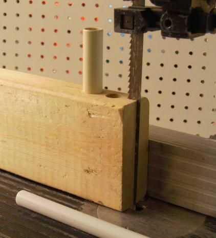 Arena o los extremos de cada pedazo de PEX y CPVC en un taper. Esto hará más fácil para el PEX se deslice dentro del CPVC y el CPVC para más tarde ser forzado en su diámetro de 0,625 pulgadas orificios de montaje en columna de PVC de la antena. El nominal del CPVC de media pulgada de diámetro externo es 0,625 pulgadas de diámetro. Con ella la raja y relleno de la hendidura PEX y la varilla de la antena, inserción en los agujeros de montaje apriete el CPVC, que a su vez se apriete la raja PEX, que se sujete la varilla con fuerza.