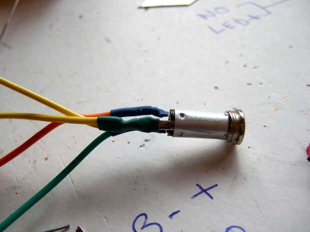 Los cables de lo 3.5mm Jack R, L GND dos alambres y aquí... Derecho va al amplificador de R +