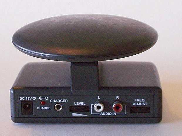Cuidadosamente seleccionar y ajustar a una frecuencia de radio, que es relativamente limpio y libre de señales de radio indeseadas, es una parte rutinaria del proceso de instalación. Basado en mi experiencia, he colocado en la frecuencia de 900 MHz (gama baja microondas) simplemente porque no se utiliza mucho más y hay mucho menos tráfico de radio allí para ocuparse. También utilizo un transmisor principal de sustancial 900 MHz, alimentado por una fuente de alimentación 18VDC, además de una antena de alta ganancia y montada sobre un trípode de 6 pies de altura, que se va ahogar hacia fuera cualquier extraviados señales de radio de 900 MHz que pueden ocurrir que aparezca en el área de operación. El sonido monofónico se transmite también vía a la izquierda y una derecha estéreo transmisión (= 2 frecuencias) que reduce naturalmente cualquier efecto de una interferencia de radio poco probable en un 50%. Y no es infrecuente tener que lidiar con líneas eléctricas cercanas, con su característico bajo 60 Hz RF interferencia, lo cual reduce el alcance efectivo del sistema de 900 MHz. El sistema inalámbrico, 60 Hz RF interferencia de líneas eléctricas cercanas reduce el alcance máximo (transmisor a altavoz) a estas condiciones y rangos: