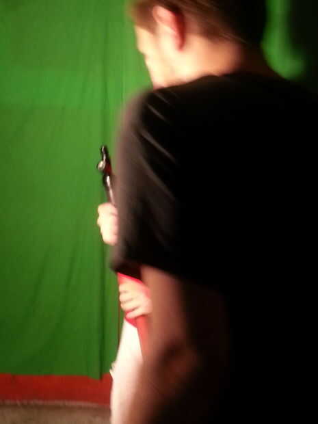Cuando le toman fotos que desea configurar las luces para que no deje una sombra en la pantalla verde. Esto facilita más espacio que tiene. Usé tela verde para mi pantalla. Yo había pegada a mi pared. Uso de un tri-pod hará tomar fotos mucho más fácil.
