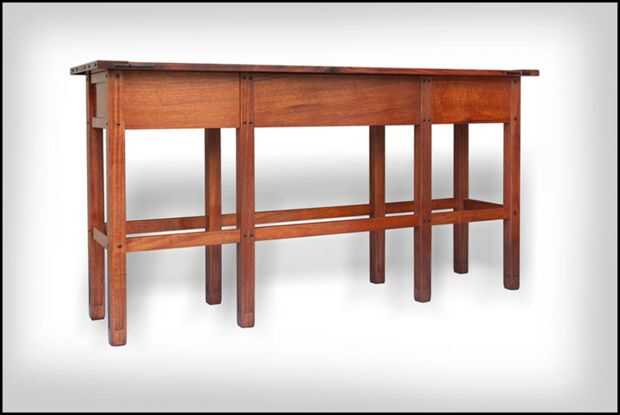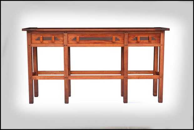 Mesa de diseño se inspira en los muebles de los hermanos Charles y Henry Greene nació alrededor de 1860. Los hermanos Greene arquitectura y diseño de muebles alcanzó su punto máximo durante los años 1902-1910. Fue durante este período que crearon algunos de sus mejores obras, que incluye las residencias Gamble y Blacker en Pasadena, California. Los hermanos no sólo diseñaron las casas pero también diseñaron algunas de las características de muebles y Built-in de sus casas. Utiliza sobre todo madera de caoba con detalles únicos carpintería en ébano.