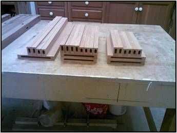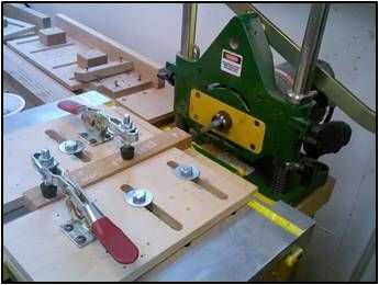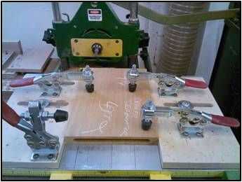 Configuración de la máquina con plantillas y me hizo una prueba de corte en una pieza de muestra. Una vez que esté satisfecho con la configuración, corté todas las mortajas para ese conjunto de piezas y luego se trasladó a la configuración del siguiente hasta que todas las piezas fueron empotradas.