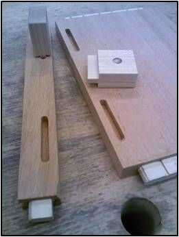 Los dos rieles de la parte superior y el interior caras de los divisores de dos cajón tienen dos ¼" amplia 2" largos surcos en ellos. Coloque la escalera de botones en el borde superior de estas piezas y marcar la posición de la lengua. Esta es la posición de las ranuras.