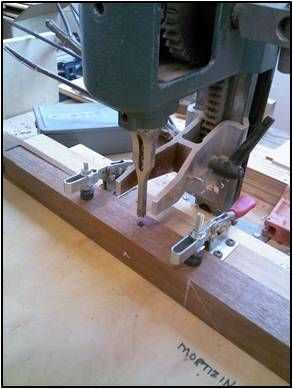 Utilicé una máquina para escoplear con un ¼" mortajar cincel/taladro. La mortaja es perforado ¼" profundo.