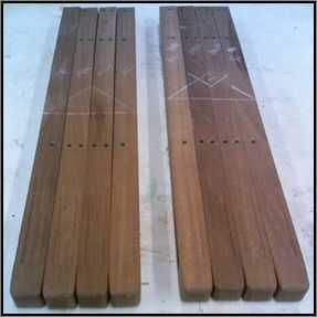 La colocación de estas clavijas cuadradas está en la intersección de las juntas de mortaja y espiga. En el centro de juegos de piernas son dos clavijas cuadradas en cada lugar de mortaja/espiga. En las piernas exterior es sólo una clavija para cada balseta y la espiga común.