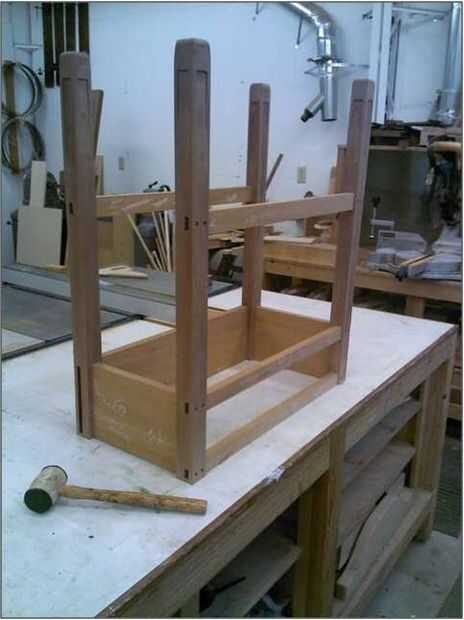 Usted necesita secar Ensamble las tres secciones de la tabla base para asegurar que todas las camillas, barandas y delantales alineen correctamente y que las juntas estén apretados y cuadrados.