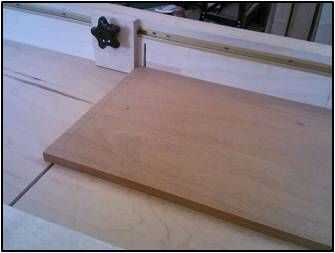 Configuración de un bloque de tope en el trineo de corte transversal que posicionará el corte de la Sierra de ½" desde el extremo de la mesa.