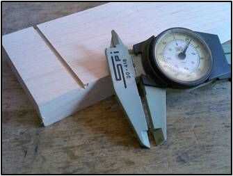 Utilizar el corte para establecer la altura de la lámina, aproximadamente ¼". Utilice un trozo de madera y medir la profundidad del corte para asegurar que es correcta.