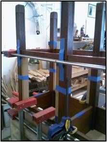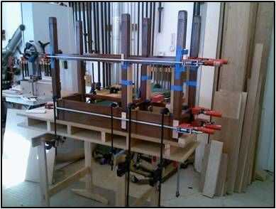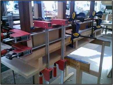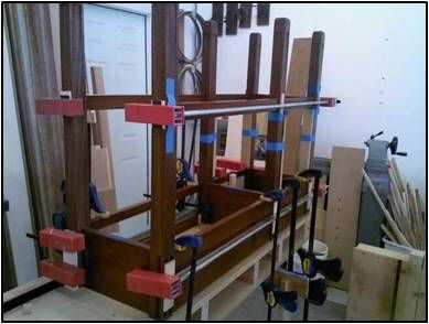 Las abrazaderas fueron colocadas en la parte superior de las espalda delantales y en los rieles del cajón para que se pone piso a la plataforma.