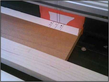 Nota: Siempre mantenga una mano sobre la Junta y ejercer presión hacia abajo mientras se presiona la Junta contra la guía. Mover la mesa lentamente a través de la broca. Asegúrese de que no van más allá de las líneas de referencia.