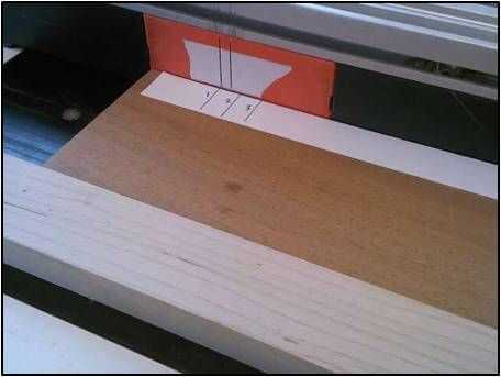 Levante el extremo de la tabla por encima de la altura poco y despacio baje sobre la broca. Una vez hecho el tablero sobre la broca puede mover el tablero hacia usted hasta que la línea en el tablero se alinee con la línea de la cinta de cerca.