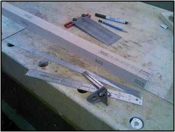 Fijar las patas en su banco de trabajo y determinar el mejor fuera de caras y marcarlos. Es necesario marcar las posiciones de las mortajas en cada pierna. Los conjuntos del centro de las piernas tienen mortajas en 3 caras. El conjunto externo de las piernas tienen mortajas en 2 caras. Aunque la colocación de las mortajas son constantes, las longitudes son diferentes. Cada pata va tener un conjunto diferente de mortajas o la colocación de las mortajas se invertirá. Es mejor si cada pierna está marcada para asegurar que la carpintería se corta con precisión. Mida dos veces y corte una vez que es el lema de carpinteros!