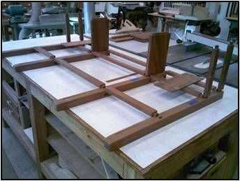 Los lados utilizan construcción de marco y el panel en la parte superior que requiere una ranura adicional de ¼" en las piernas para aceptar el panel.