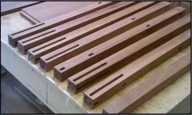 Todas las camillas y los paneles son ¾" de espesor. Las mortajas son 3/8" ancho, dejando un 3/16" hombros en los lados, superior e inferior de las mortajas. La longitud de las mortajas depende del ensanchador o anchos de panel. Las mortajas se deben cortar no más de 7/16" de profundidad.