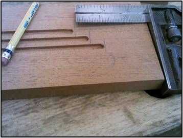 Use una escuadra ajustable y revise el recuadro de cada ranura. Marque los extremos de los surcos para que sean consistentes de cajón.