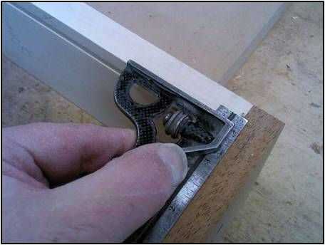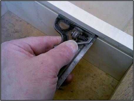 Use una escuadra ajustable y colóquela en la ranura hasta. Bloquear la Plaza. Transferencia de la medición en el borde superior de ambos lados. Hacer lo mismo con la ranura en la parte delantera.