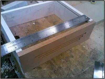 Mida la distancia entre las marcas en el cajón y medida de la anchura de la parte inferior del cajón.