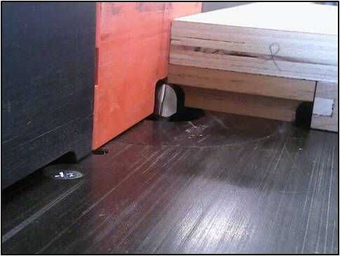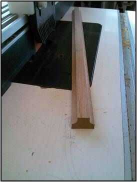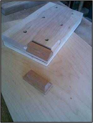 Hacer una plantilla para cortar el extremo de grano de los tiradores. Esto mantendrá el pequeño pedazo firmemente contra la guía y la broca de fresadora.