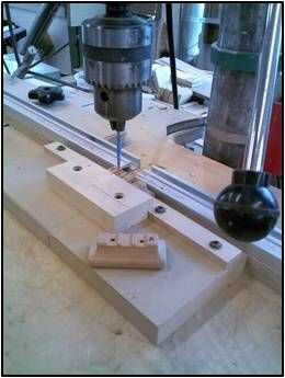 Una vez que se cortaban las ranuras perforé dos agujeros de 3/32" en los huecos exteriores para garantizar los tiradores en el frente del cajón.