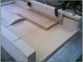 Coloque el borde se unieron contra la guía de corte transversal del patín y el extremo cuadrado contra el tope y empezar a cortar cada pieza a la longitud.