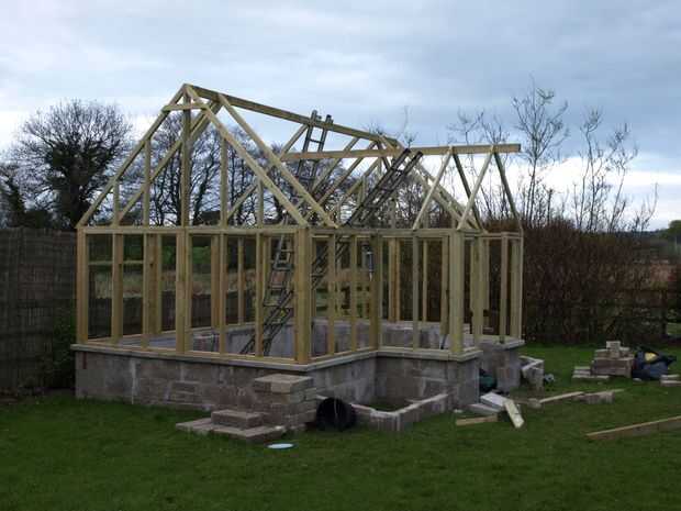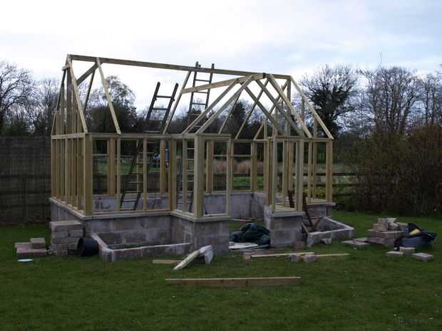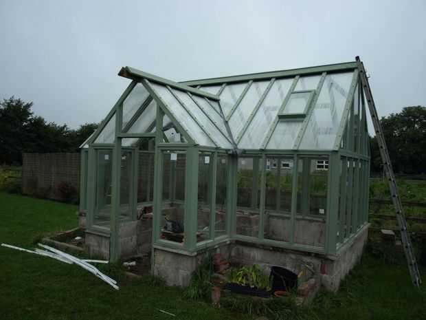 Mi esposa quería un invernadero y tenía un precio de algunas personas para venir yo a hacer uno para nosotros, los precios comenzaron a £18k, no había manera estaba pagando por algo que pensé que podía hacer yo, así que estaba hacia abajo la yarda de madera para comprar lotes y lotes de 40 x 90 tratados madera que hace la mayoría de la marco. La casa verde se encuentra en una pared de 2 pies alto monobloque, no preocuparse de una pared de la cavidad como húmedo no era realmente un problema en un invernadero. El marco se hace de 12 fotogramas individuales. Cada capítulo consiste en un marco de caja simple con ya sea 1 o 2 columnas, se ha unido a 90degrees al marco de la caja para dar 2 ó 3 ventanas. La ventana media de cada sección entonces fue cabida con una pieza temporal de contrachapado de 6 mm para evitar que el marco de la deformación cuando se atornillan. Los marcos entonces se aseguran uno al otro y los mensajes de esquina 80 x 80 mm con pernos coche, sellador de silicona se aplicó a todas las juntas entre los marcos antes de ellos ser atornilladas. El marco entonces puede fijarse a la pared con tornillos concreto de 6 pulgadas. El marco es de 130 cm de altura. La estructura está coronada por una pieza de 90 x 35 mm en que resistiría los aleros de la cubierta. Una vez atornillada y seguro puede eliminarse la capa temporal en los marcos de la ventana. La casa verde es 3 m x 5 m con una altura de cresta de 4,2 metros.