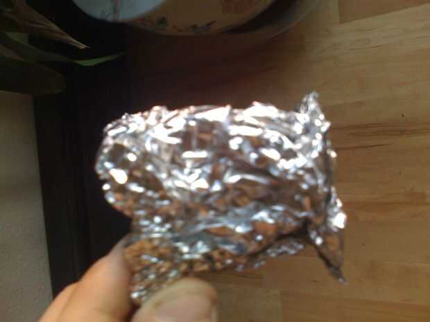 La hoja en una taza para mantener el suelo del molde. Hacer las aletas para poder asegurar la taza en.