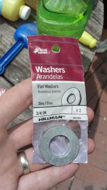 Lo que necesita es una espiga (conseguí el más barato en alrededor de $7) una arandela grande (eran más caros que he querido en aproximadamente $1,35 cada) y algunos sellador de techos de silicio (lo obtuve de restauración o una tienda por un par dólares)