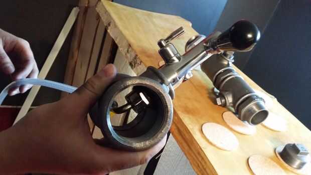 Con esto en mente tomar la llave, a la ferretería local o una tienda proveedores de material de plomería. Jefe de la sección con la sección de tubo de metal grande. Usted se busca 2" conectores de tubería de diferentes tipos. En primer lugar una sección en T con un 1" hacia fuera del gancho agarrador y compruebe que la llave se ajusta a lo. Puede que necesite obtener arandelas más grandes para garantizar correctamente la llave.
