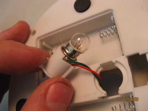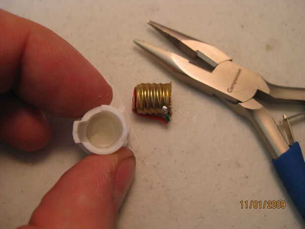 Finalmente tenemos que tirar de la base de luz fuera de la carcasa de plástico. Usé un par de pinzas y se apoderó del metal tan lejos abajo como pudo y le dio un tirón rápido. Ahorraré el bulbo y conector para su uso posterior en otro proyecto.