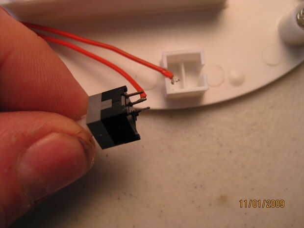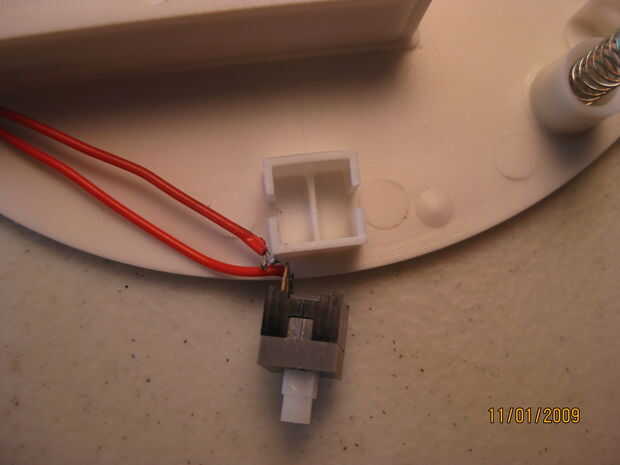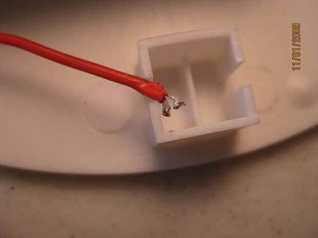 2. se dará cuenta de tres patas en el interruptor, dos de los cuales son soldadura cables rojos.