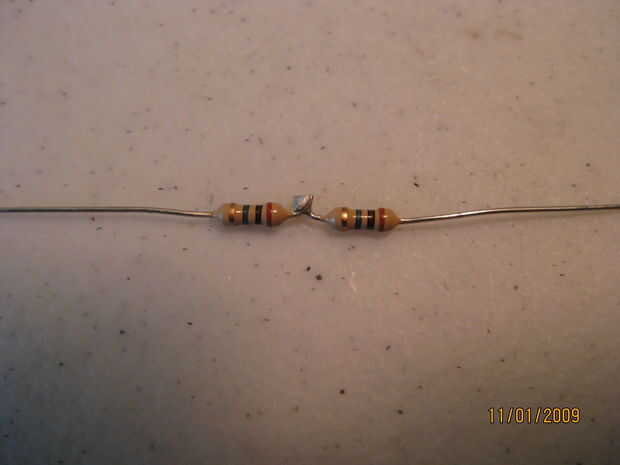 2. sólo tenía 1M resistencias de ohm poner alrededor así que había soldado a dos de ellos en serie y había recortado las piernas. (imagen 2)