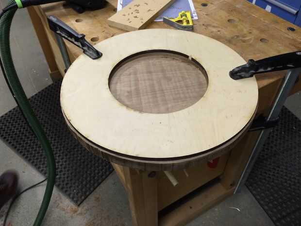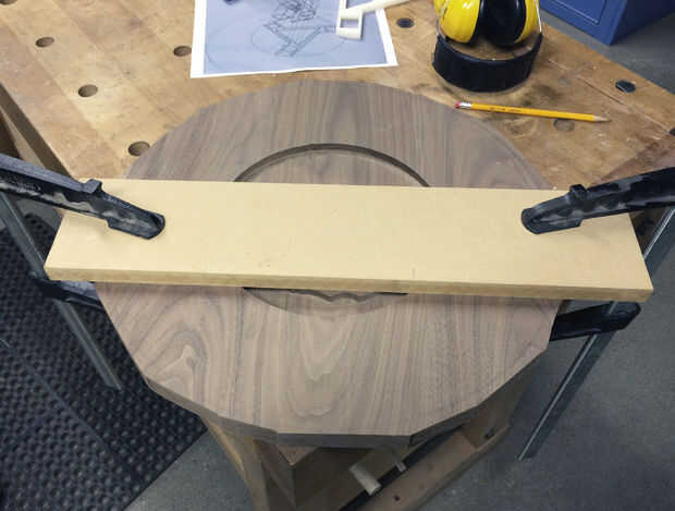 Haciendo la tapa de tabla era la parte más delicada del proyecto. Tomaron el camino fácil hacia fuera y corte una plantilla de madera contrachapada en el cortador del laser, pero hay definitivamente más inteligentes formas de hacer este (