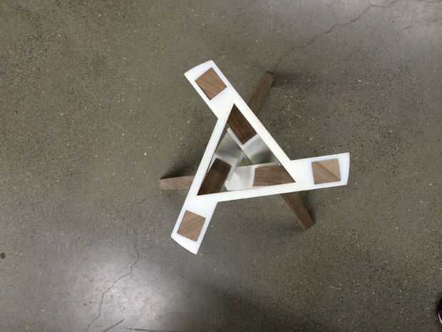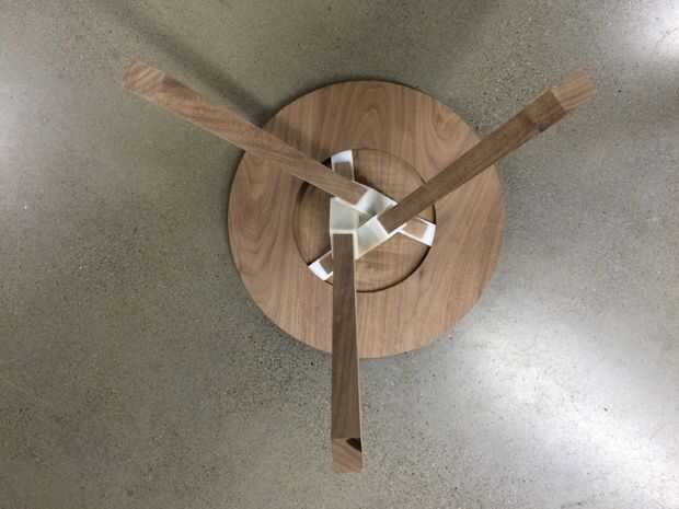 Ahora a la parte más fácil y más gratificante. Montaje de las piezas tomó alrededor de 1 minuto! Coloca la tapa de la mesa boca abajo, inserta la articulación superior en la depresión circular y se deslizó las piernas en la segunda articulación. Hecho.