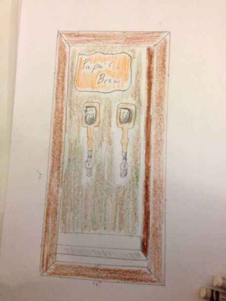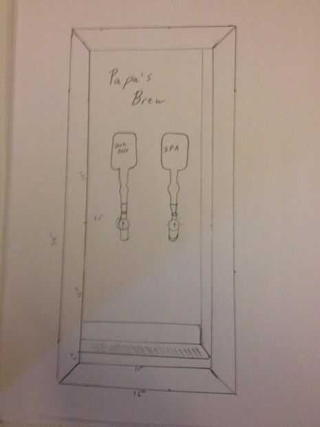 Que bosquejar los planes para ejecutarlo por mi hermano y mi hermana para asegurarse de que parecía bueno para ellos. El plan tentativo era que el interior sea 12 1/8"(para acomodar la bandeja de goteo, con el poliuretano en el interior de la estructura de madera) con el ancho adicional de la madera mediría a ser unos 13 1/2" (lo suficiente para caber entre montantes de la pared, con espacio para meter una cuña en su lugar).