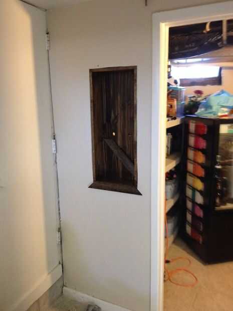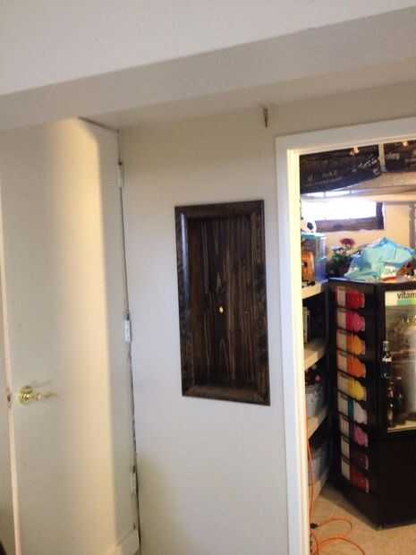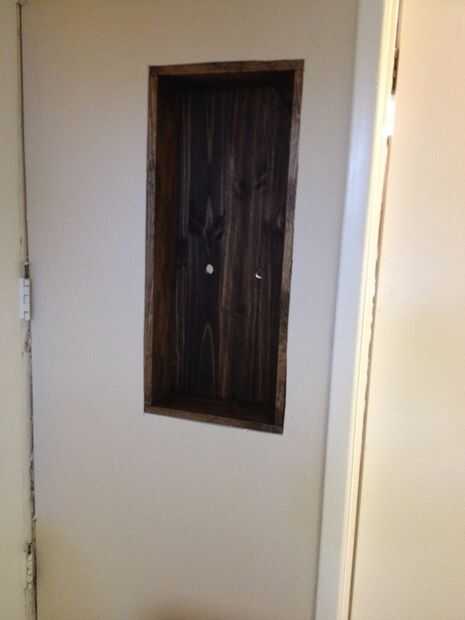 Después de que completamente seco colocó en la pared. Utilizando un nivel puse cuñas para asegurarse de que todo era recto, luego clavado en su lugar con una clavadora de acabado. Asegurándose de que mi corte fue centrada totalmente, había clavado en su lugar asegurándose de que todas las piezas de ajuste restantes fueron en alineado con los bordes externos del marco.