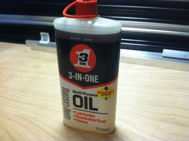 - Máquina de aceite 3-en-uno, WD40 o lubricante de casi cualquier tipo (agua o aceite base son finos para el aluminio). Aprovechando los agujeros sin aceite puede llevar a atar y remover.