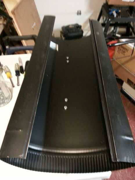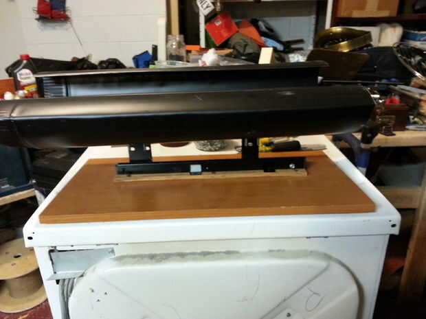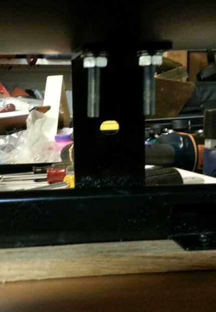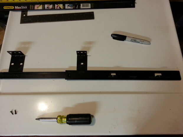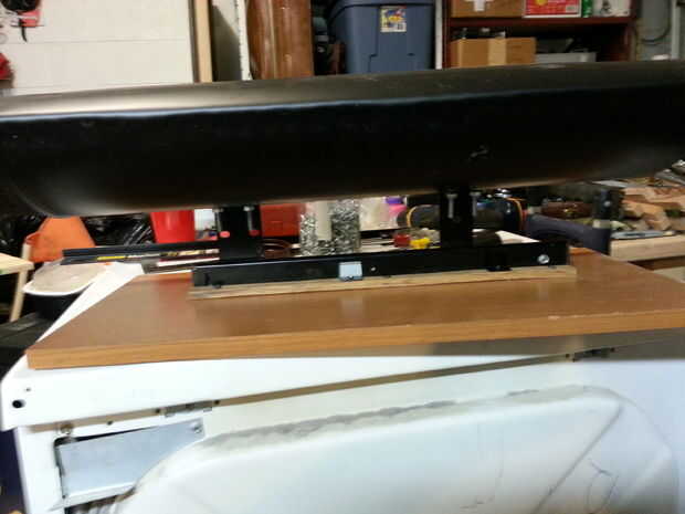 Tenía una bandeja de teclado deslizante de un viejo escritorio que tenía en el garaje. Usé uno de los soportes de deslizamientos y la plataforma para hacer la base. Pongo a un autorroscante tornillo metálico en el soporte deslizante mientras que era cerrado para bloquear en posición cerrada. Entonces había atornillado el soporte en el centro de la plataforma. Necesitaba hacer una tira de madera a lo largo de la mitad porque los orificios para atornillar el soporte a la Junta no estaban al ras con la parte inferior del soporte. Te recomiendo pretaladrar los agujeros porque la madera es estrecha y se fractura fácilmente.