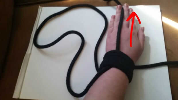 Tomar la cuerda A y tirar por debajo de todos los lazos que va hacia arriba. Tire de la cuerda a través de todo el camino.