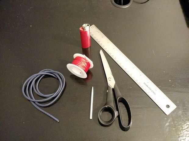 Se necesita: dos pies de paracord, una herramienta de su elección para que haga un orificio en el paracord, tijeras, una herramienta de medición, un encendedor y micro paracord.