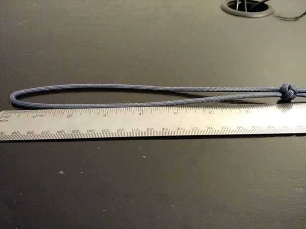 El bucle de paracord debe ser cerca de 8,5 pulgadas (21,5 cm)