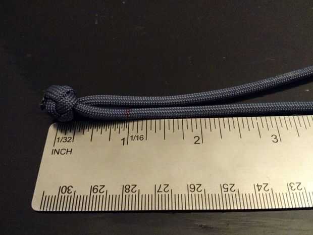El paracord debe marcarse alrededor de una pulgada del nudo.