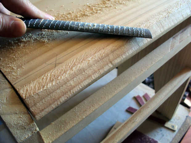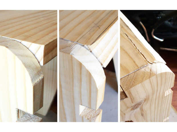 Nota: puede notar que cuando se corta en el grano de la Junta, la sierra hace un ruido más agradable que al aserrar a contrapelo