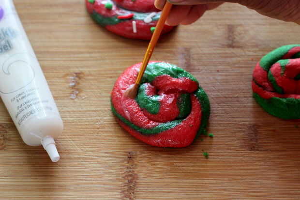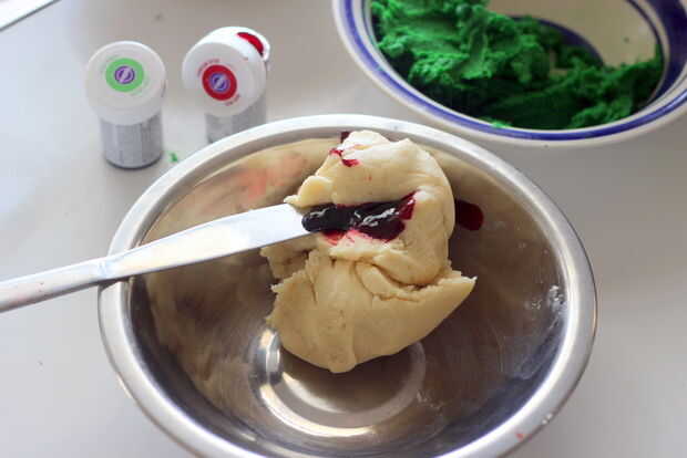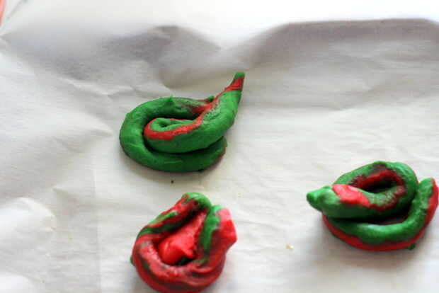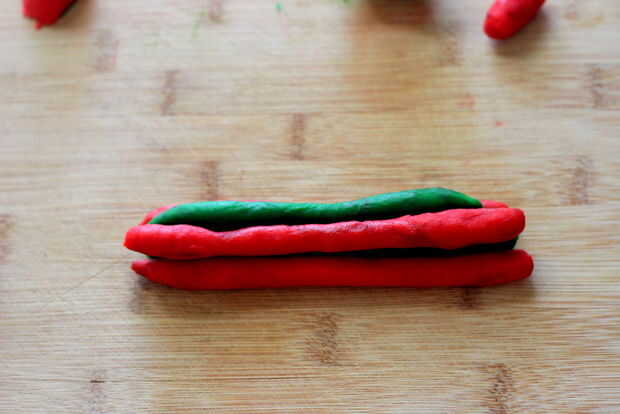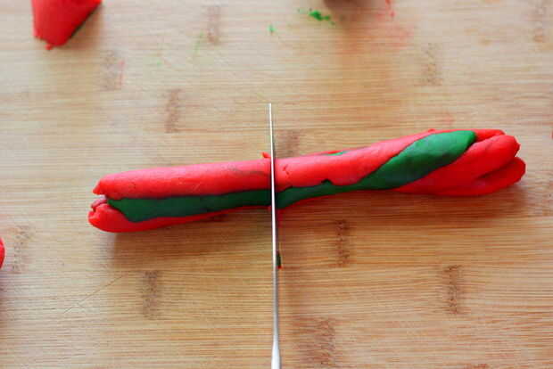 Instrucciones de la receta: Precalienta el horno a 350 grados. En un tazón grande de crema de mantequilla y azúcar hasta que esté cremosa, agregar Extracto de huevo a la taza y mezclar. Añadir harina y la sal en el bol y mezclar hasta que todos los ingredientes se convierten en una masa suave. Cortar la masa por la mitad y colorear una mitad con colorante rojo y otra con colorante verde. Coloque la masa en bolsas zip y deje enfriar durante 30 minutos. Enrolle un poco de cada masa en gusano largo 2-3 pulgadas. Coloque la masa de rojo y verde juntos y el rodillo la masa hasta que se tuerce en una cuerda larga. La curva del extremo de la cuerda como un bastón. Coloque en una bandeja forrada con papel sulfurizado y hornear durante 8-10 minutos o hasta que los bordes estén firmes al tacto. Coloque en una cookie y enfríe completamente. Servir con un vaso de leche.