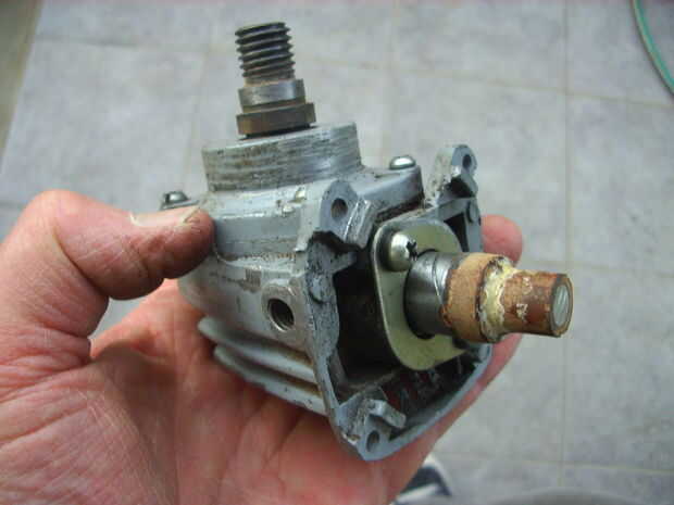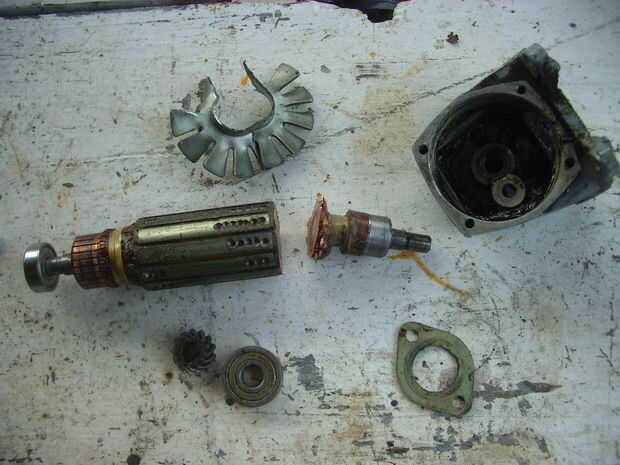 Destripé totalmente la vieja inapropiada, y luego de analizar la factibilidad del proyecto, corté el eje del rotor en la parte donde comienza el bobinado. Me quedé con la parte de adelante o cabezal, y lo demás... no, no lo tiré, lo guardé para otra vez. (!)