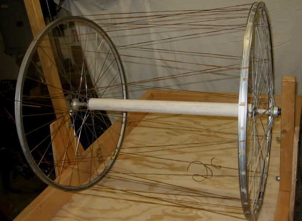 Ate un nudo en hilo doble (Ensenada) para formar un bucle. Poner la bola de la guita en una pequeña bolsa de plástico, puré plana y ver si se deslizará entre rayos. Si quiere, fije temporalmente el lazo al borde y encaje moviendo la bola de la guita. Si la bola no se deslizará entre radios, deberás dejarlo en el punto de partida y varias veces tirar guita a través de todo el recorrido.